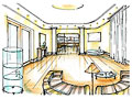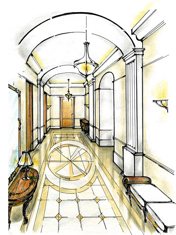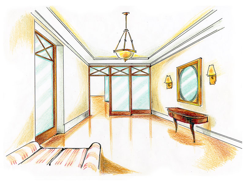 В силу вышеозначенного факта, имеем честь предложить Вашему вниманию рисованные изображения интерьеров (именно такие рисунки получает Заказчик), а так же рабочие фотографии объектов.